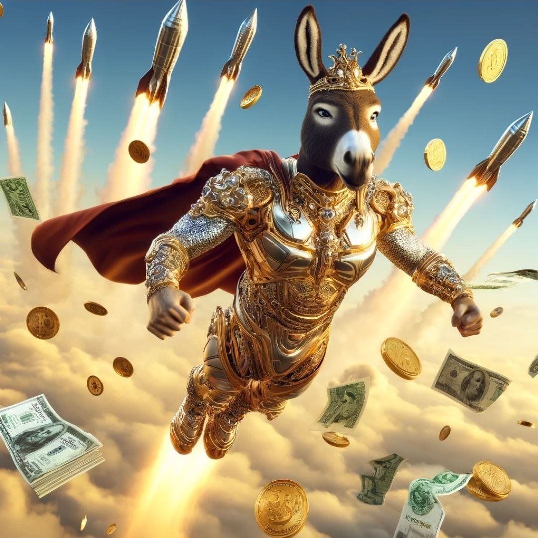 $DOKY is a meme coin that's all about having fun and embracing the silliness. It's inspired by the popular meme culture, and its logo features a cute donkey wearing a crown. It's a lighthearted and playful cryptocurrency that aims to bring joy to the crypto world.